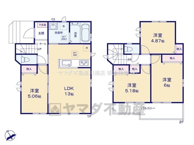 | 間取り詳細 | LDK13畳(1F)、洋5畳(1F)、洋5.1畳(2F)、洋5.1畳、洋4.8畳(2F) | 都市計画 | 市街化区域 |