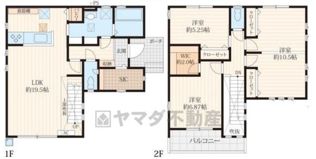 | 間取り詳細 | LDK19.5畳(1F)、洋6.8畳(2F)、洋5.2畳(2F)、洋10.5畳(2F) | 都市計画 | 市街化区域 |