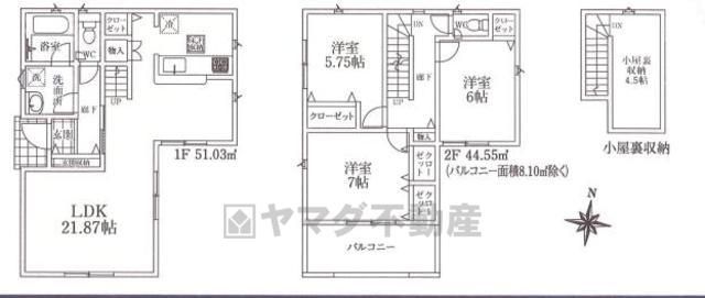 | 間取り詳細 | LDK21.8畳(1F)、洋7畳(2F)、洋6畳(2F)、洋5.7畳(2F)、その他4.5畳 | 都市計画 | 市街化区域 |